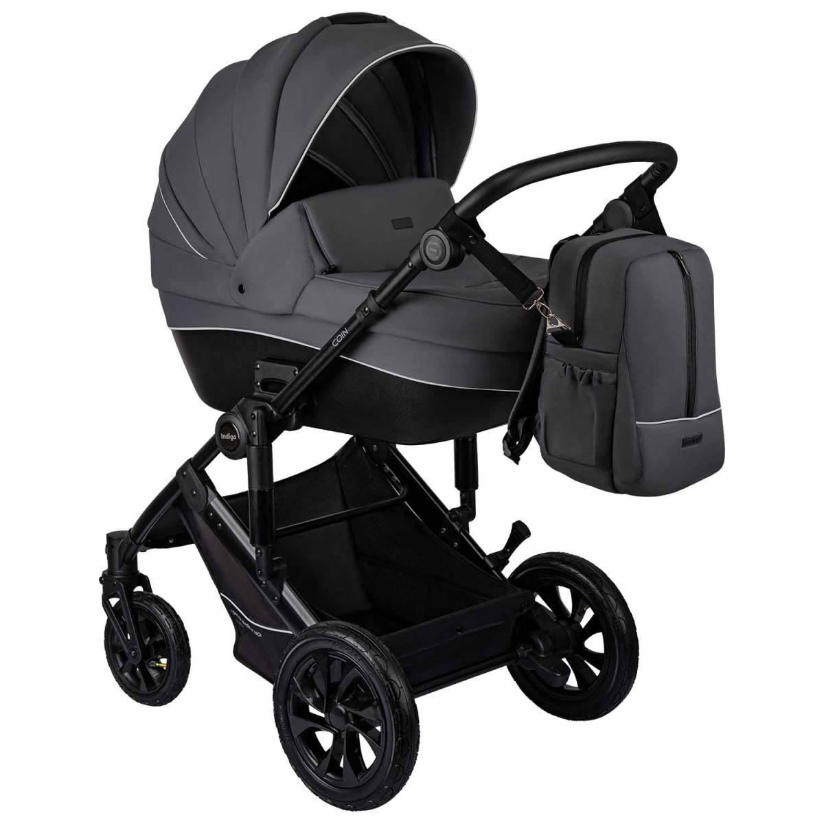 Коляска Indigo COIN 2 в 1 - это надежная всесезонная детская коляска, которая сочетает комфорт для ребенка, удобство для родителей и современный стильный дизайн.