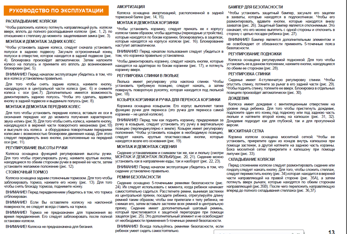 ➢ максимальный вес коляски — 13,4 кг.
