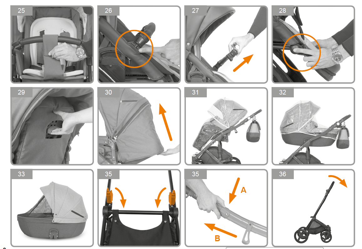 ➢ регулируемый капюшон с козырьком от солнца и вентилируемым окошком ;