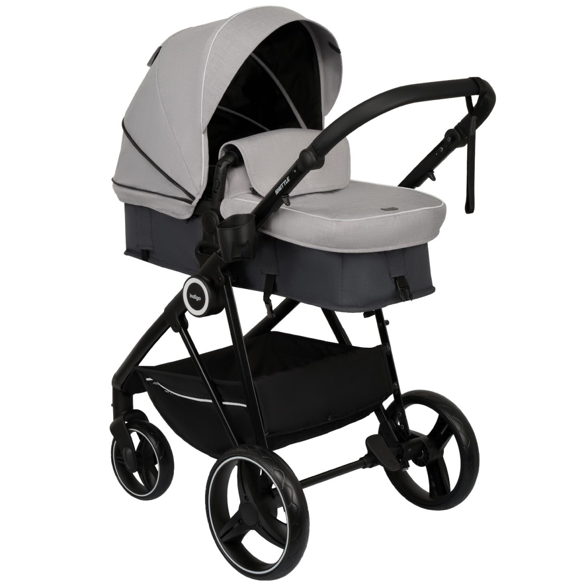 Indigo SHUTTLE - это современная детская коляска-трансформер 2 в 1, созданная для комфортных прогулок с малышом с первых дней жизни. Модель сочетает функции люльки для новорожденного и прогулочной коляски, благодаря чему станет практичным решением для семьи, позволяя использовать одну коляску на протяжении нескольких лет.Особенность модели - трансформируемый прогулочный блок, который легко меняет конфигурацию в зависимости от возраста ребенка. Для младенца коляска раскладывается в просторное спальное место с ровной поверхностью, обеспечивая правильное положение тела и комфортный сон во время прогулок. Когда малыш подрастет, блок быстро преобразуется в удобное сиденье для прогулок в положении сидя или полулежа.