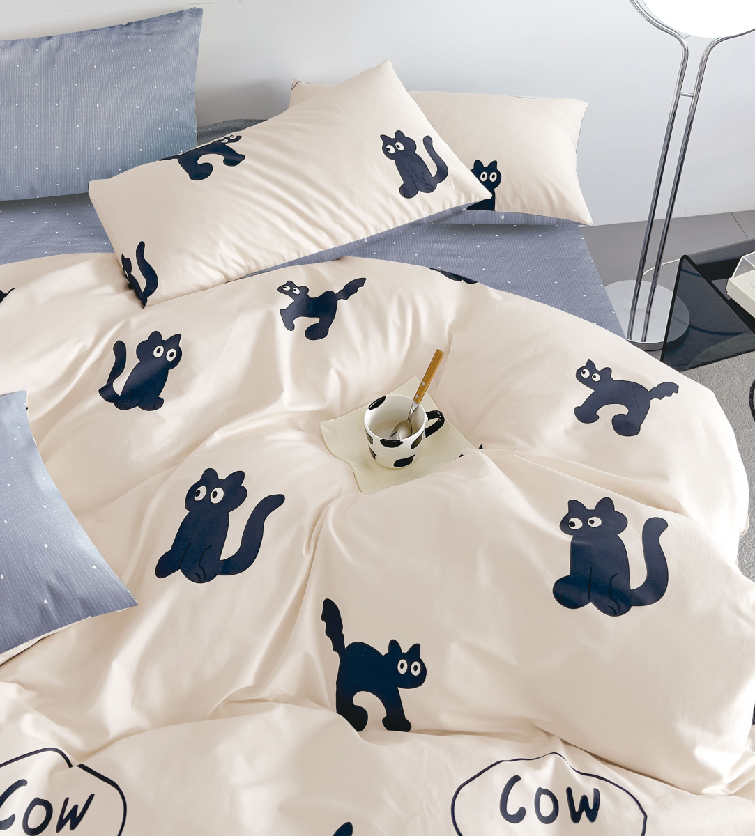 2-спальный комплект идеально подойдёт для двуспальной кровати и комфортного сна двоих. Он хорошо держится на матрасе, не сбивается и сохраняет форму во время использования. Сатин-твил устойчив к деформации, не теряет насыщенность цвета и гладкость поверхности при соблюдении рекомендаций по уходу.